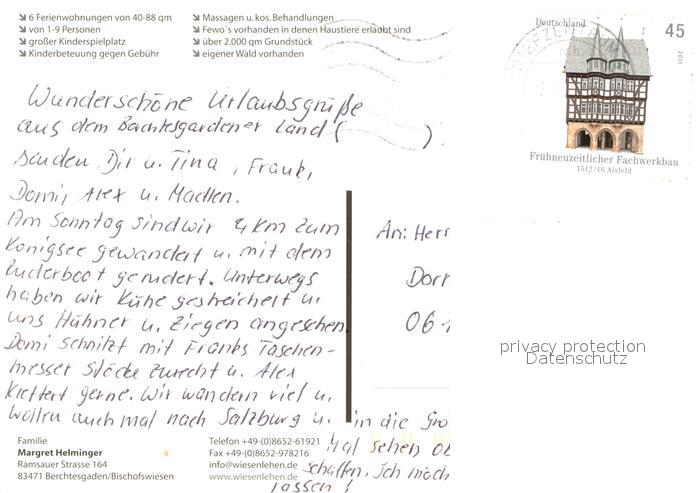 73716793 alte Postkarte Bischofswiesen Haus Wiesenlehen Gaestehaus Pension Landschaft Alpen postalisch gelaufen Erhaltung siehe scans [FriedD77] KatCode: 11110009172117