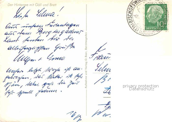 72743130 alte Postkarte Bischofswiesen Hintersee mit Goell und Brett Berchtesgadener Alpen postalisch gelaufen Erhaltung siehe scans [FriedD77] KatCode: 11110009172117