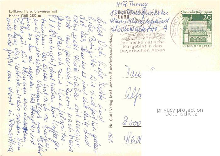 72899939 alte Postkarte Bischofswiesen Hohe Goell postalisch gelaufen Erhaltung siehe scans [NatalD47] KatCode: 11110009172117