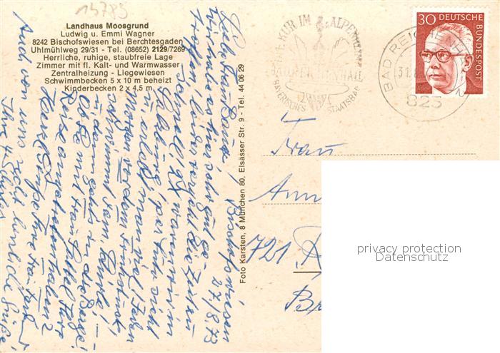 73834449 alte Postkarte Bischofswiesen Landhaus Moosgrund Schwimmbad postalisch gelaufen Erhaltung siehe scans [FriedD77] KatCode: 11110009172117