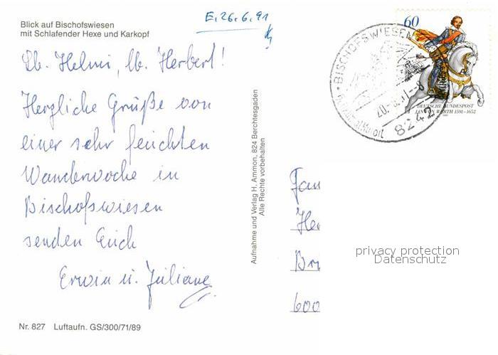 72725823 alte Postkarte Bischofswiesen mit Schlafender Hexe und Karkopf postalisch gelaufen Erhaltung siehe scans [WerneD78] KatCode: 11110009172117