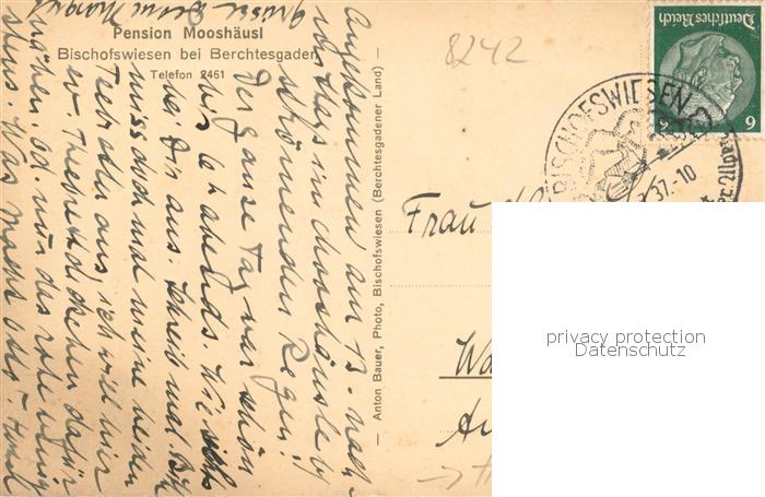73782398 alte Postkarte Bischofswiesen Mooshaeusl Aussenansicht postalisch gelaufen Erhaltung siehe scans [LiesaD40] KatCode: 11110009172117