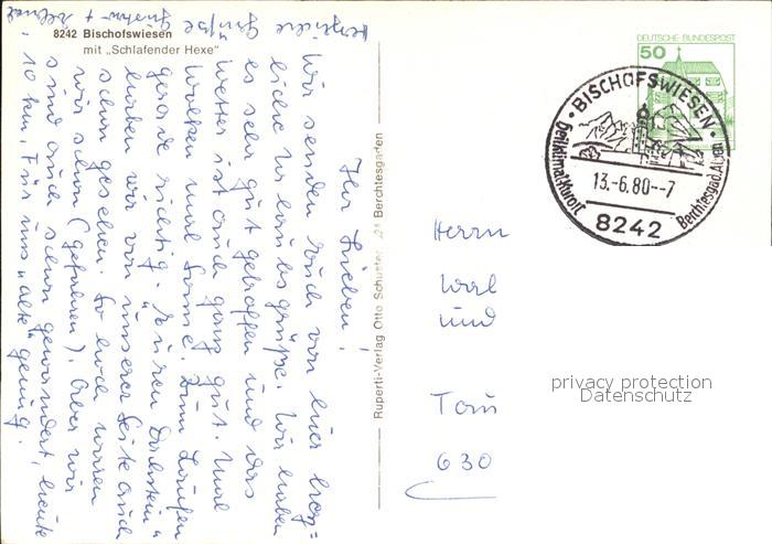 72422013 alte Postkarte Bischofswiesen Panorama mit Schlafender Hexe Rotofen Berchtesgadener Alpen postalisch gelaufen Erhaltung siehe scans KatCode: 11110009172117
