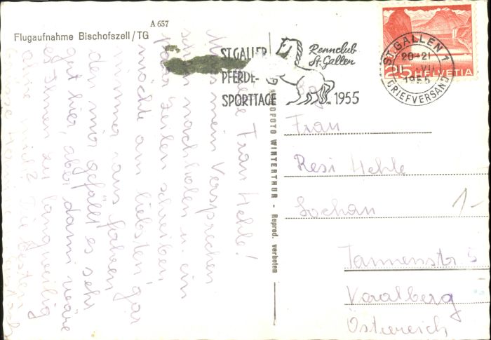 10723914 alte Postkarte Bischofszell Fliegeraufnahme postalisch gelaufen KatCode: 11470200605982