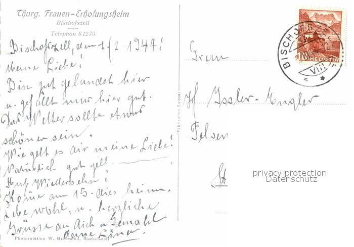 12690992 alte Postkarte Bischofszell Thurgauisches Frauen-Erholungsheim postalisch gelaufen Erhaltung siehe scans [LiesaD40] KatCode: 11470200605982