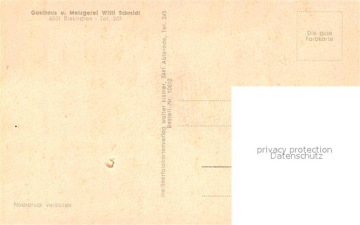 32975508 Biskirchen Gasthaus Willi Schmidt postalisch nicht gelaufen Erhaltung siehe scans [NatalD47] KatCode: 11110006532016