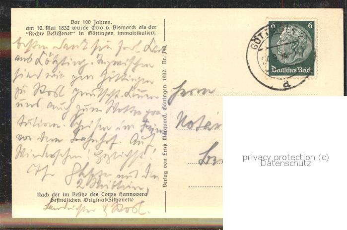 11547148 Bismarck Student Göttingen Silhouette Corps Hannover KatCode 22400000001000