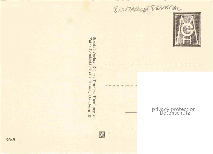 Bismarckdenkmal BISMARCK Otto von Politik Hansastadt Hamburg postalisch nicht gelaufen Erhaltung siehe scans [SanaeD93] Sana Katcode 22420000000600