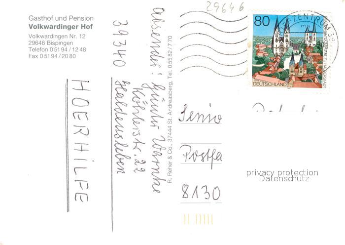 73569220 alte Postkarte Bispingen Gasthof Pension Volkwardinger Hof postalisch gelaufen Erhaltung siehe scans [FriedD77] KatCode: 11110003358002