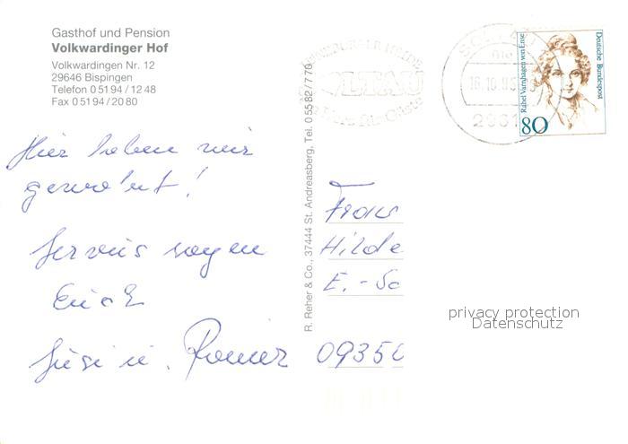 73662930 alte Postkarte Bispingen Gasthof Pension Volkwardinger Hof postalisch gelaufen Erhaltung siehe scans [FriedD77] KatCode: 11110003358002