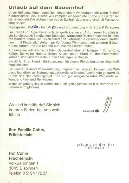 74085686 Bispingen Hof Cohrs Fruechtenich Gaestezimmer postalisch nicht gelaufen Erhaltung siehe scans [WerneD78] KatCode: 11110003358002