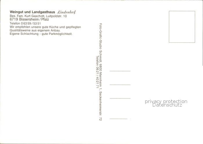 72372320 Bissersheim Weingut Landgasthof Lindenhof postalisch nicht gelaufen Erhaltung siehe scans KatCode: 11110007332004