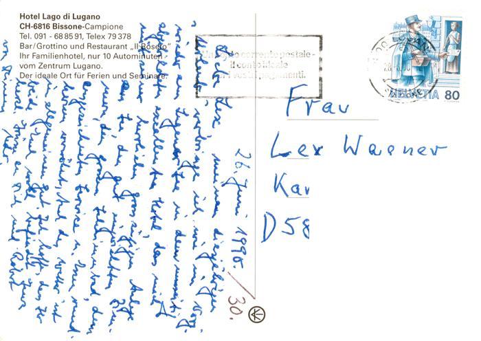 13881259 alte Postkarte Bissone Lago di Lugano TI Hotel Lago di Lugano Fliegeraufnahme postalisch gelaufen Erhaltung siehe scans [WerneD78] KatCode: 11470210660066