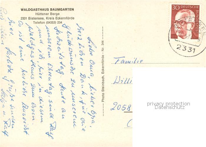73764222 alte Postkarte Bistensee Waldgasthaus Baumgarten Aussenansicht postalisch gelaufen Erhaltung siehe scans [LiesaD40] KatCode: 11110001058017
