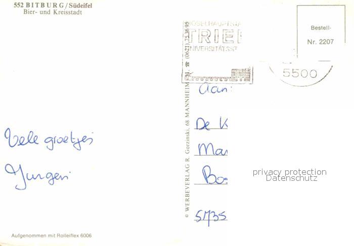 72872111 alte Postkarte Bitburg Bier- und Kreisstadt postalisch gelaufen Erhaltung siehe scans [LiesaD40] KatCode: 11110007232018