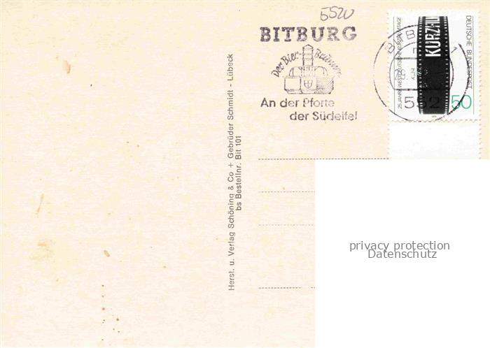 74055198 alte Postkarte Bitburg Brauerei Marktplatz Ehrenfriedhof Rathaus Panorama Albachgrotte Triererstrasse Rathaus Postplatz postalisch gelaufen Erhaltung siehe scans [WerneD78] KatCode: 11110007232018