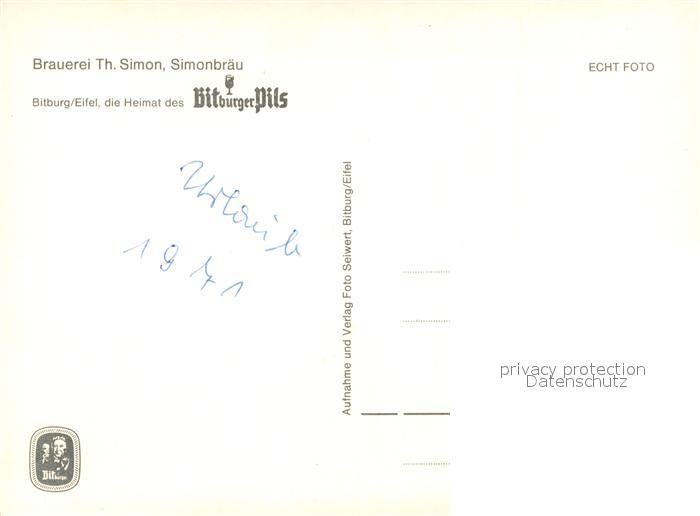 73643029 Bitburg Brauerei Th. Simon Simonbraeu Bittburger Pils Brunnen postalisch nicht gelaufen Erhaltung siehe scans [FriedD77] KatCode: 11110007232018