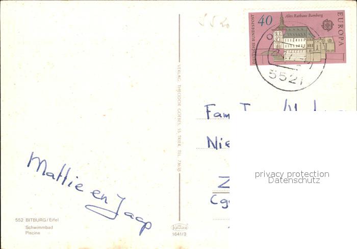 72451229 alte Postkarte Bitburg Freibad postalisch gelaufen Erhaltung siehe scans KatCode: 11110007232018