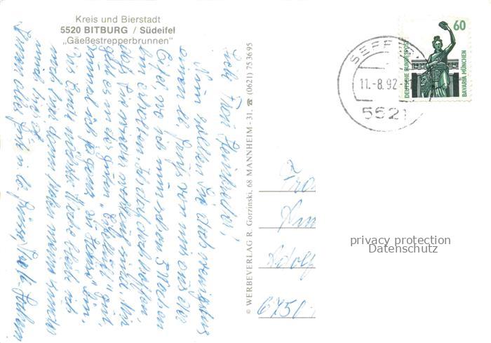 74055111 alte Postkarte Bitburg Gaeessestrepperbrunnen postalisch gelaufen Erhaltung siehe scans [WerneD78] KatCode: 11110007232018