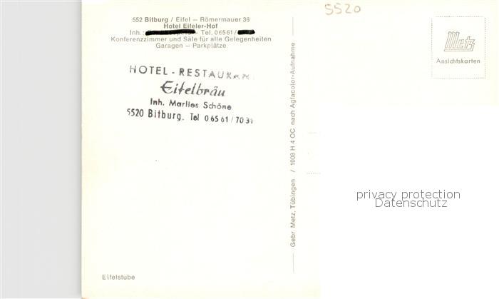 73845215 Bitburg Hotel Eifeler Hof Gaststube postalisch nicht gelaufen Erhaltung siehe scans [WerneD78] KatCode: 11110007232018