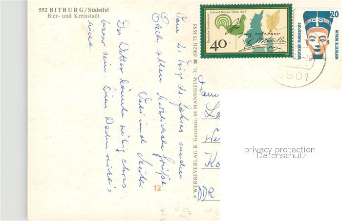 73615716 alte Postkarte Bitburg Springbrunnen Fussgaengerzonen postalisch gelaufen Erhaltung siehe scans [WerneD78] KatCode: 11110007232018