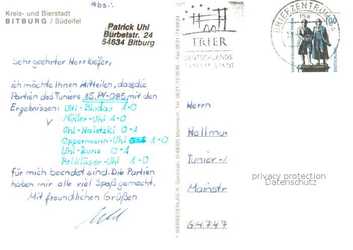 73615724 alte Postkarte Bitburg Springbrunnen Kirche Strassenpartie Brunnen postalisch gelaufen Erhaltung siehe scans [WerneD78] KatCode: 11110007232018