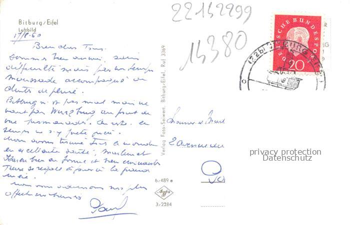 74116821 alte Postkarte Bitburg Stadtzentrum postalisch gelaufen Fliegeraufnahme Erhaltung siehe scans [FriedD77] KatCode: 11110007232018