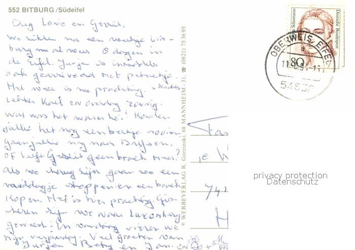72898137 alte Postkarte Bitburg Wasserspiele Strassenpartie Park postalisch gelaufen Erhaltung siehe scans [FriedD77] KatCode: 11110007232018