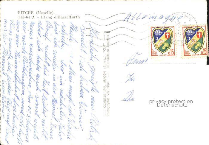 12524208 carte postale Bitche Moselle Etang d Hasselfurth postalisch gelaufen Erhaltung siehe scans KatCode: 11170057657089