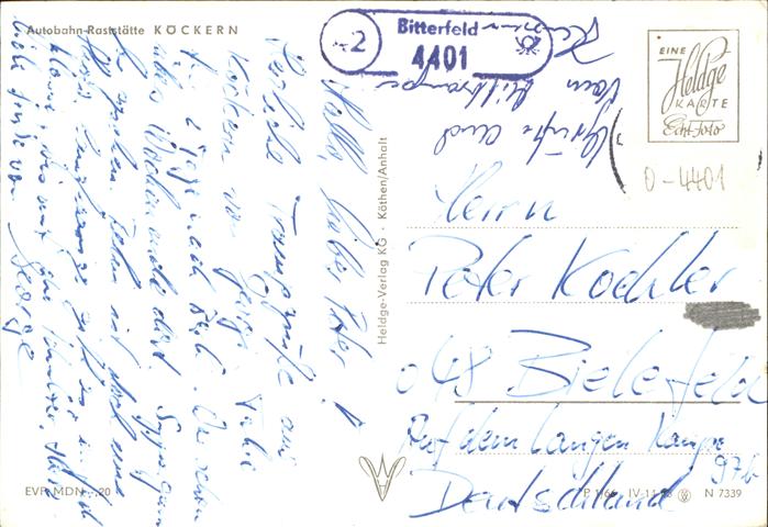 41262223 Bitterfeld Sachsen-Anhalt Autobahn Raststaette Koeckern postalisch nicht gelaufen gute Erhaltung Alte Ansichtskarte Postkarte Stef Katcode 11110015082015