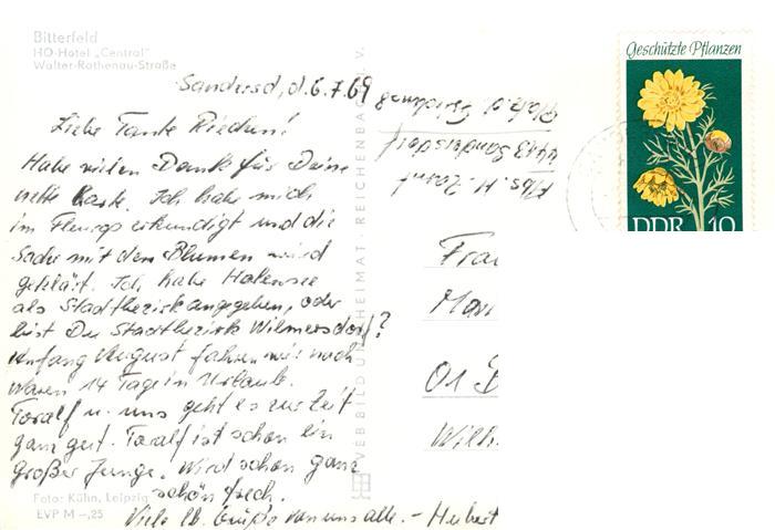 73873299 Bitterfeld Sachsen-Anhalt HO Hotel Central Walter Rathenau Strasse postalisch gelaufen Erhaltung siehe scans [WerneD78] alte Postkarte Wern Katcode 11110015082015