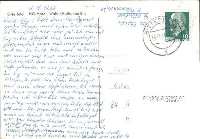 72590798 alte Postkarte Bitterfeld Sachsen-Anhalt HO Hotel Walter Rathenau Str postalisch gelaufen Erhaltung siehe scans [WerneD78] KatCode: 11110015082015