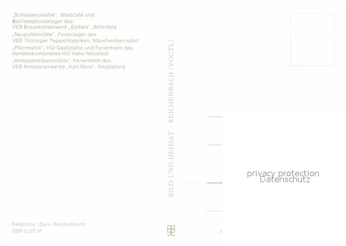 72927895 Bitterfeld Sachsen-Anhalt Pionierlager Ferienlager HO Gaststaette Ferienheime im Muehltal postalisch nicht gelaufen Erhaltung siehe scans [FriedD77] KatCode: 11110015082015