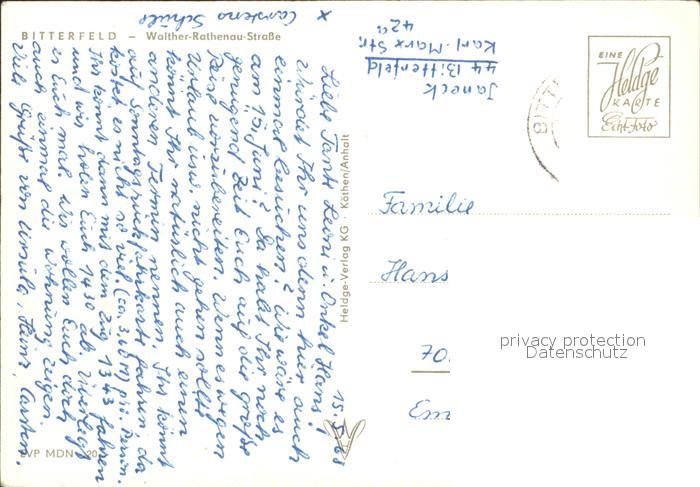72017955 alte Postkarte Bitterfeld Sachsen-Anhalt Walther Rathenau Strasse postalisch gelaufen Erhaltung siehe scans KatCode: 11110015082015