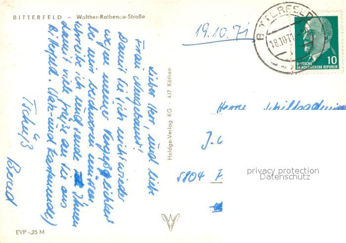 73722442 Bitterfeld Sachsen-Anhalt Walther Rathenau Strasse Fontaene postalisch gelaufen Erhaltung siehe scans [WerneD78] alte Postkarte Wern Katcode 11110015082015