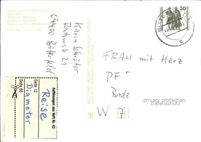 72381468 alte Postkarte Bitterfeld Sachsen-Anhalt Zentraluhr Strasse der Republik postalisch gelaufen Erhaltung siehe scans KatCode: 11110015082015