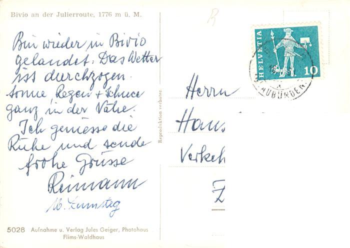 13871352 Bivio an der Julierroute postalisch nicht gelaufen Erhaltung siehe scans [WerneD78] KatCode: 11470100305940