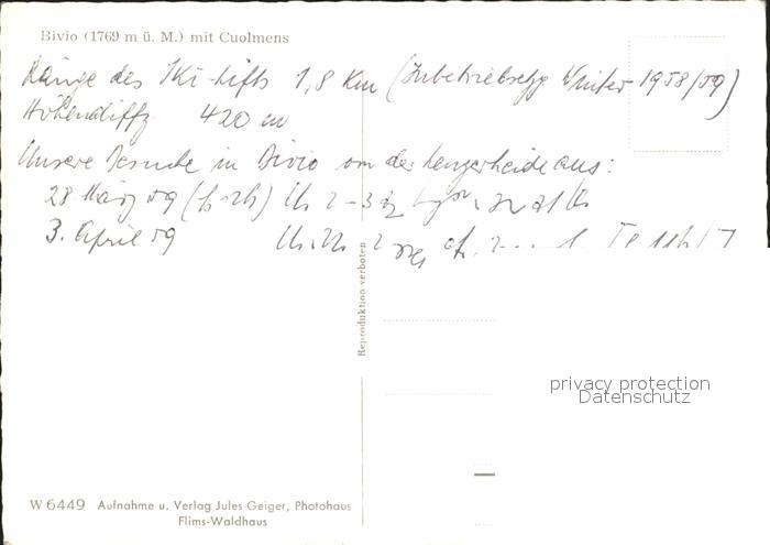 11632579 alte Postkarte Bivio mit Cuolmens postalisch gelaufen Erhaltung siehe scans KatCode: 11470100305940