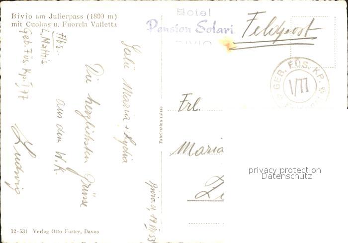 11632588 alte Postkarte Bivio mit Cuolms und Fuorcla Valletta postalisch gelaufen Feldpost Erhaltung siehe scans KatCode: 11470100305940