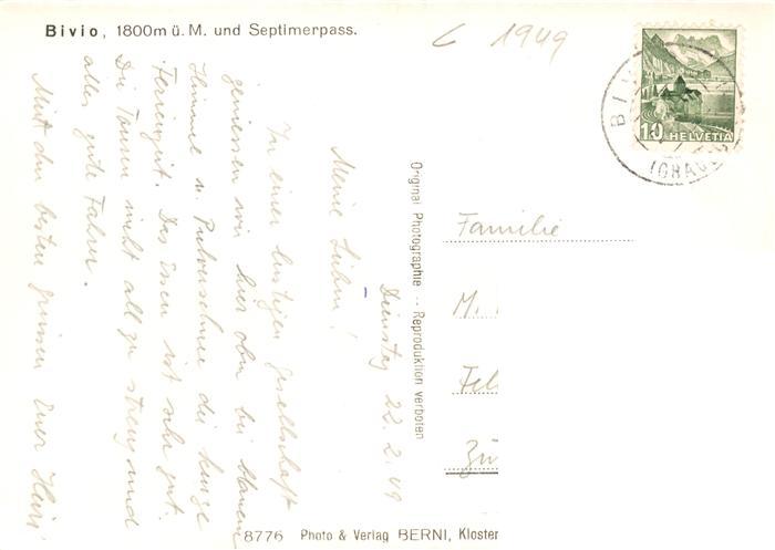 13871578 alte Postkarte Bivio Panorama mit Septimerpass postalisch gelaufen Erhaltung siehe scans [WerneD78] KatCode: 11470100305940