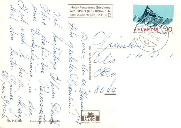 13879425 alte Postkarte Bivio Wintersportplatz Alpen Hotel Restaurant Grischuna postalisch gelaufen Erhaltung siehe scans [FriedD77] KatCode: 11470100305940