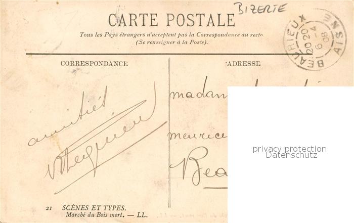 13219687 Bizerte Marche du Bois Mort postalisch gelaufen Erhaltung siehe scans [PaolaD17] old postcard Paol Katcode 18520