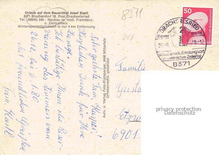 74156440 alte Postkarte Blachendorf Drachselsried REGEN Bayern Ferienbauernhof Bayerischer-Wald Panorama Drachselsried Kirche Mehrbildkarte Esszimmer Wiesen postalisch gelaufen Erhaltung siehe scans [Karloger] KatCode: 11110009276120