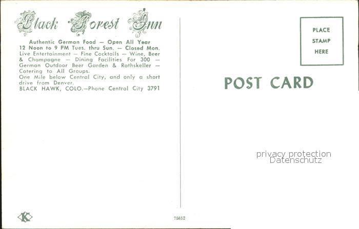 72500436 Black Hawk Colorado Black Forest Inn postalisch nicht gelaufen Erhaltung siehe scans KatCode: 14140060000000
