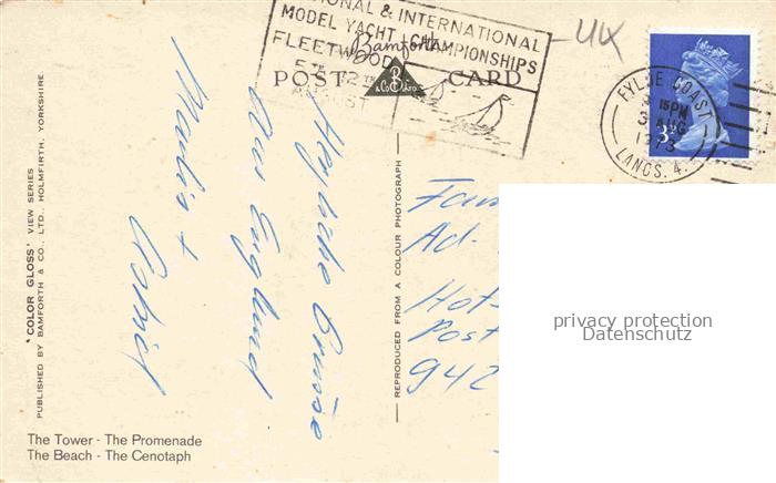 74095697 old postcard BLACKPOOL UK The Town Promenade Beach Cenotaph Strassenbahn postalisch gelaufen Erhaltung siehe scans [IrynaD87] KatCode: 11570UKD4D42EY