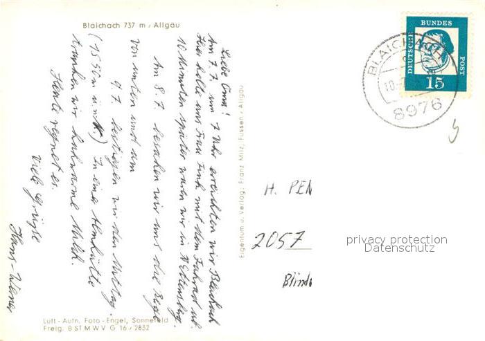 72951902 alte Postkarte Blaichach Allgaeu Fliegeraufnahme postalisch gelaufen Erhaltung siehe scans [PaolaD17] KatCode: 11110009780115