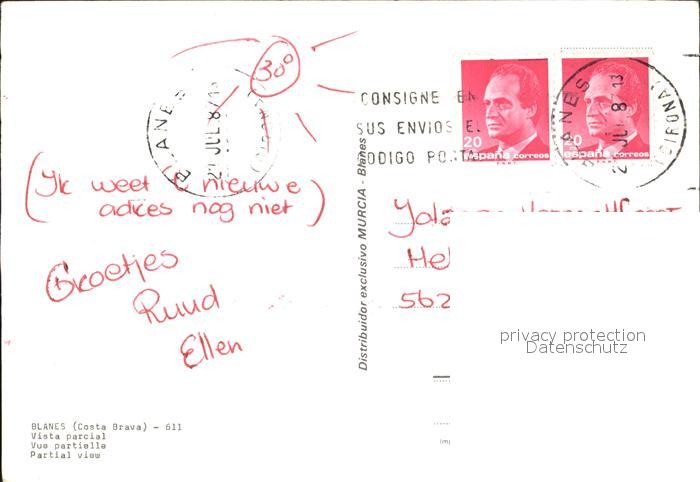 old postcard Blanes Blick auf die Stadt und den Strand postalisch gelaufen Erhaltung siehe scans