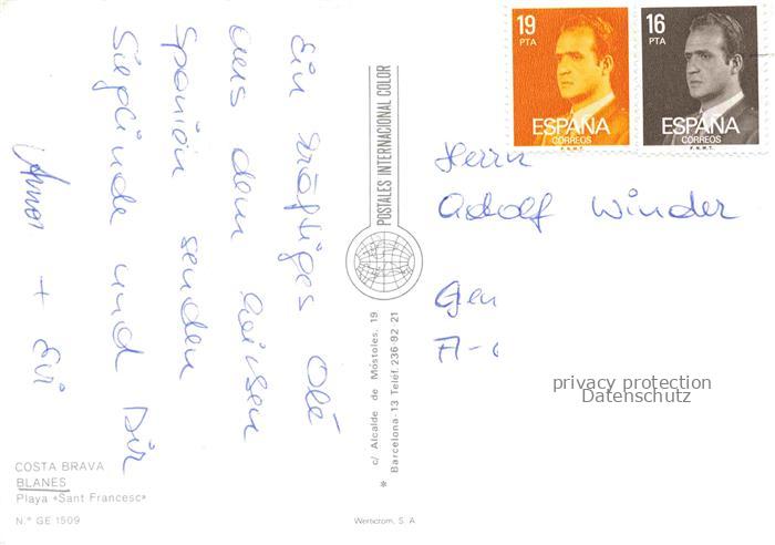 74097621 old postcard BLANES Costa Brava ES Playa Sant Francesc postalisch gelaufen Erhaltung siehe scans [WerneD78] KatCode: 11510
