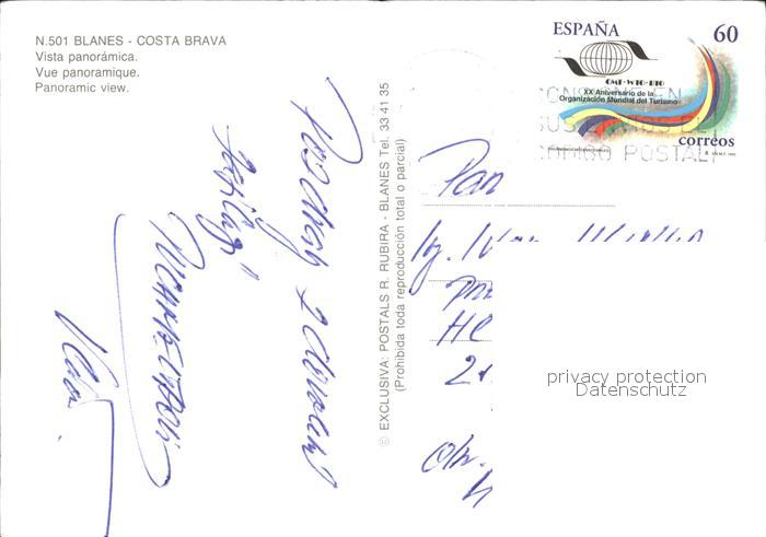 old postcard Blanes Strand Hafen Kueste Fliegeraufnahme postalisch gelaufen Erhaltung siehe scans