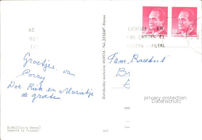 old postcard Blanes Subasta de Pescado postalisch gelaufen Erhaltung siehe scans